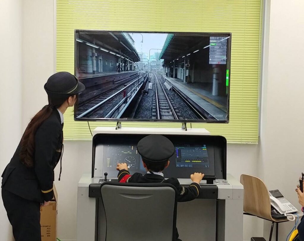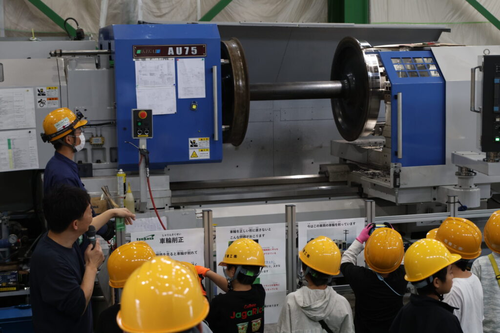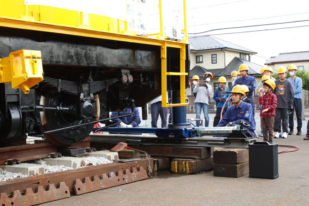 当日は、車輪削正の見学、脱線復旧作業の一つである保守用車のジャッキアップの見学、保守用車の運転席見学やエアー工具を使用したオリジナルのミニ銘版作成体験、そしてJRE MALLで販売中のJR東日本トレインシミュレータ公式マスコンユニット(司機工製造)でのシミュレータ体験など、盛りだくさんのプログラムを実施いたしました。